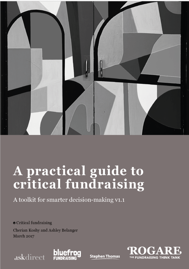 The Critical Fundraiser manifesto (particularly the expanded version) draws on Rogare’s guide to critical thinking for fundraisers, by Rogare network members Cherian Koshy and Ashley Belanger (both USA), as well as our Theory of Change for fundraising.